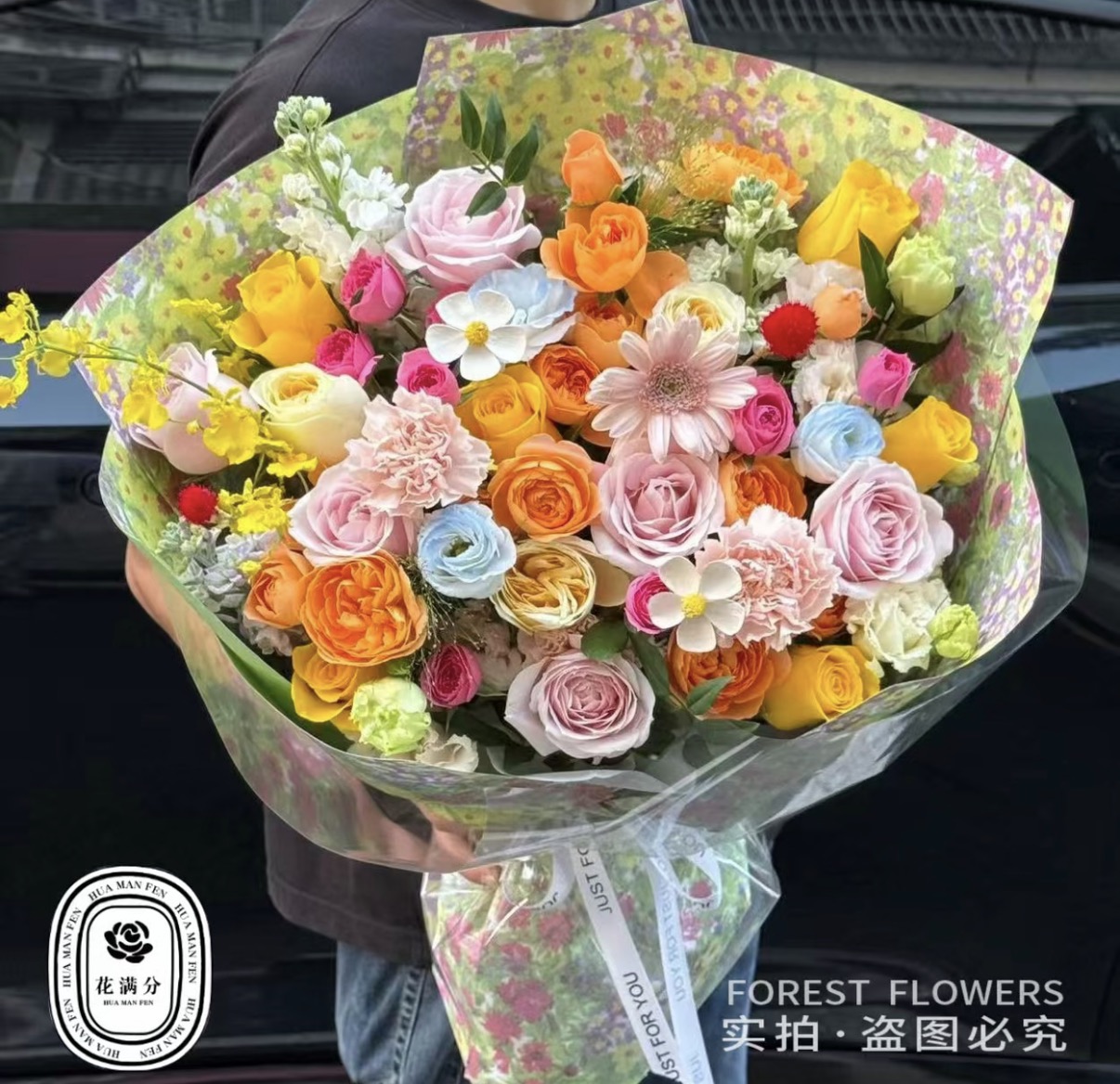 【霓虹狂欢】粉玫瑰混搭桔梗紫罗兰蝴蝶兰花束生日鲜花礼物送女朋友闺蜜花店配送花上门