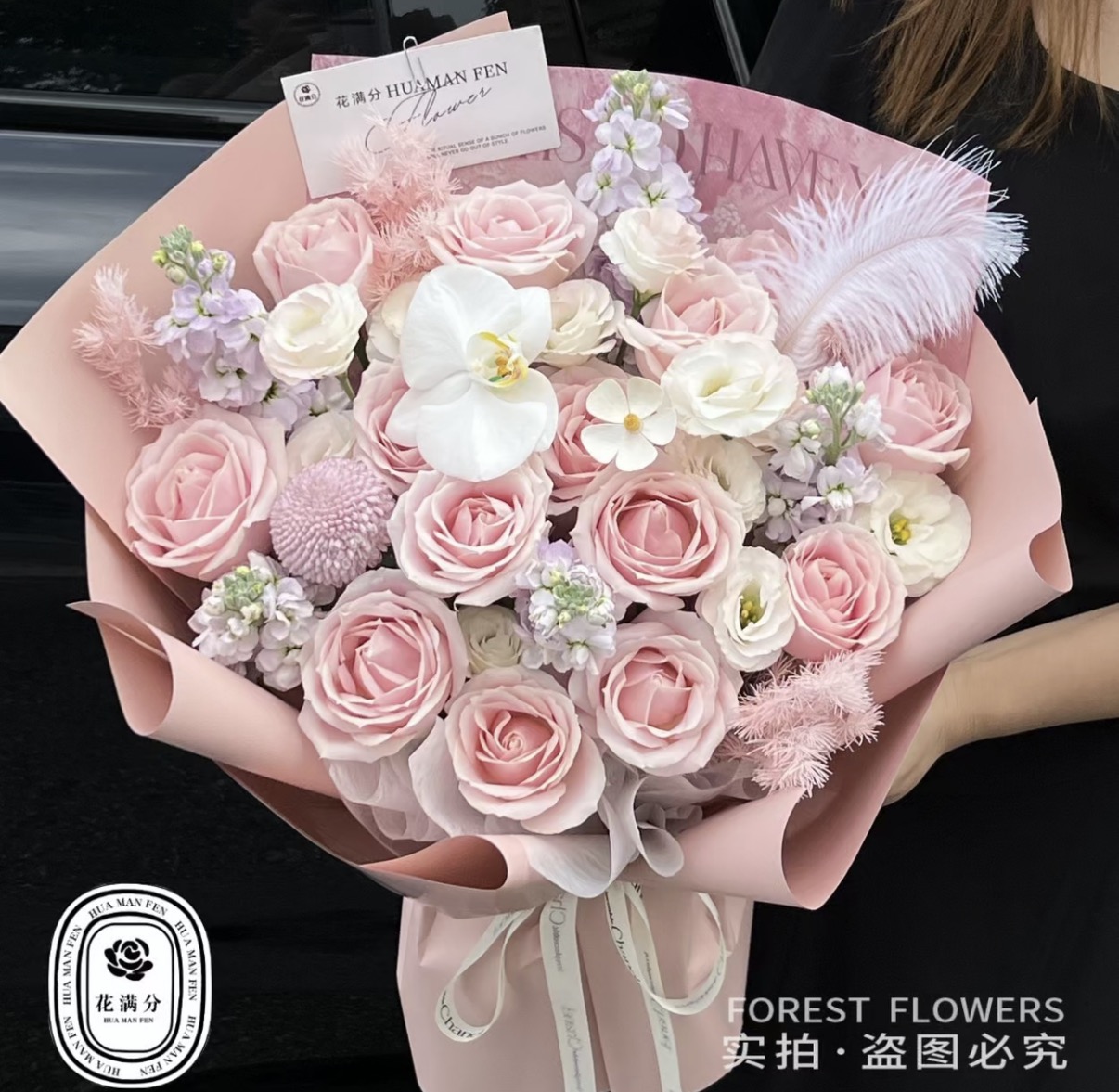 【浪漫美满】33朵粉玫瑰芭蕾风花束生日鲜花女士送女朋友闺蜜对象礼物花店送花配送上门